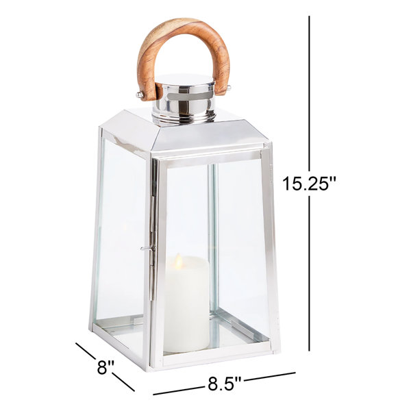 Nautical in style, this handsome outdoor lantern shines brilliantly in a chrome finish and real teak wood handle. Add a couple of pillar candles and it makes a beautiful accent for the front porch.