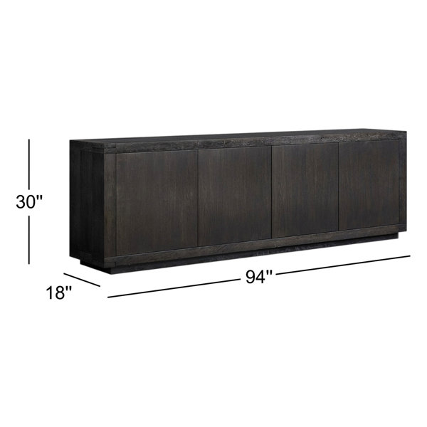 I love the Nemo 94” wide sideboard. I’m using it as a media console. Plenty of room to store games, dvds, It came fully assembled and the white glove delivery was great. The doors are very large so you need to be careful about moving the sideboard because your doors can become misaligned. (This can be fixed though by adjusting the hinges.). The shelves are long and have no center support so I wouldn’t put anything too heavy on them. Other than that, it’s a beautiful piece that we have gotten so many compliments on. It really elevated our gamemedia room. With a 70” tv there is still plenty of room on either side for lamps or other decor. We purchased it in black. The doors open and close easily with a magnetic closure.