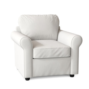 Welcome in a little traditional charm to your farmhouse living room or family den with this armchair. It's upholstered in the fabric of your choice and has a classic silhouette with recessed arms and a deep seat. Its seat is filled with a down and foam blend and sinuous springs for a medium-firm feel and the right amount of support. Plus, its seat and back cushions are removable, so vacuuming up those inevitable crumbs from family movie night is easy as pie.