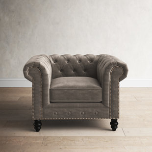 Inspired by antique Chesterfield sofas, this velvet armchair is a sure way to bring traditional style and extra seating to your living room. Supported by a sturdy wooden frame and turned feet, it's upholstered with plush polyester and has rolled arms and nailhead trim that complete the vintage look. Looks aside, its seat is filled with foam fill for a medium-firm feel and the right amount of support, which we know you'll appreciate. And we love how this armchair's seat cushion is removable, so vacuuming up those pesky crumbs is easy as pie. We love how this armchair looks with an Oriental-style floral rug layered right underneath.