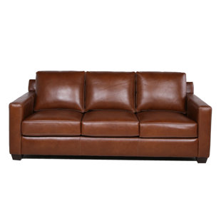 The sofa is the heart of any well-made living room – that's why we love this made-to-love, genuine leather sofa. Its top grain leather upholstery is naturally water and mildew resistant, and it's treated with a protective wax finish, so it's kid and pet friendly. It's crafted with a solid and engineered pine wood frame with square arms for a clean-lined silhouette that's sure to fit right in with your rustic decor. Sinuous springs and fill give it a just-right balance of softness and support. Plus, removable cushions make cleaning this sofa a breeze.
