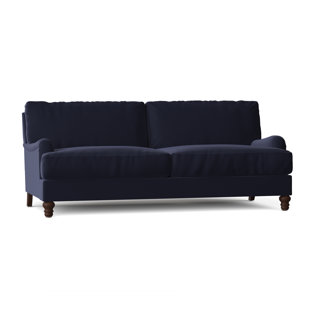 This USA-made 82" W sofa welcomes your family and friends to kick off their shoes and unwind. Made with a solid and engineered wood frame, this upholstered sofa has an understated look with turned front legs and recessed arms. It features blended down-filled cushions and a sinuous spring construction to give you support as you relax. Plus, the cushions are both removable and reversible for even wear and pillow fort building. The cushion covers are removable, too, making them a cinch to clean. Choose from a variety of fabrics to find the best match for your living room.